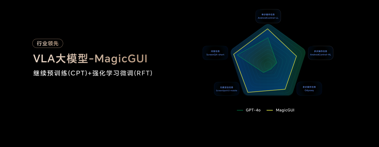 在AI能力上,荣耀提出了“阿尔法战略”所勾勒的AI终极图景,明确了“端侧AI为核心,以人为本释放人类潜能”的方向,为全球产业摆脱“唯云端论”的路径依赖提供了“第三选择”。荣耀已在AI领域具备八大行业领先能力,包括最强的端侧智能体YOYO、最强的VLM大模型-MagicVL和VLA大模型-MagicGUI、能够跨端的个人知识库,以及首发系统级的MCP架构,也有着超3000个场景的自动执行能力。基于这些能力,实现了行业最全的泛化能力,搭载全新YOYO智能体的荣耀Magic8系列,也正式通过了中国信通院的权威认证,荣获“L3级卓越型”称号的产品。